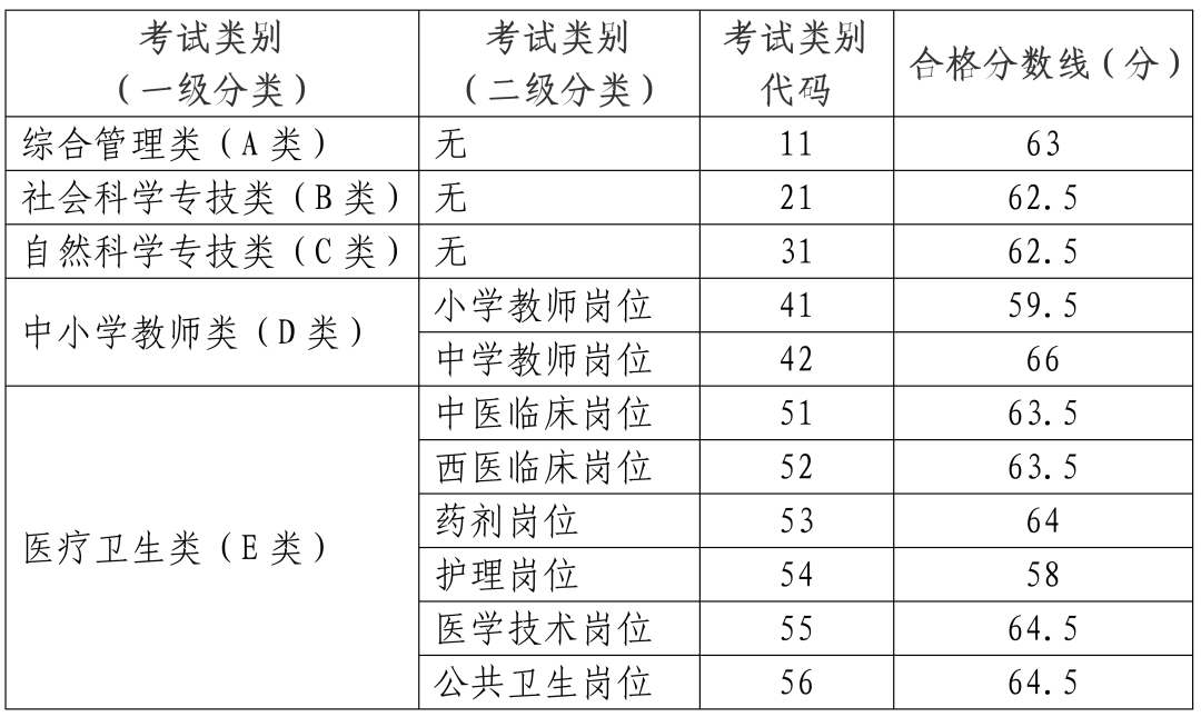 一、《職業能力傾向測驗》單科成績不低于下表中合格分數線。