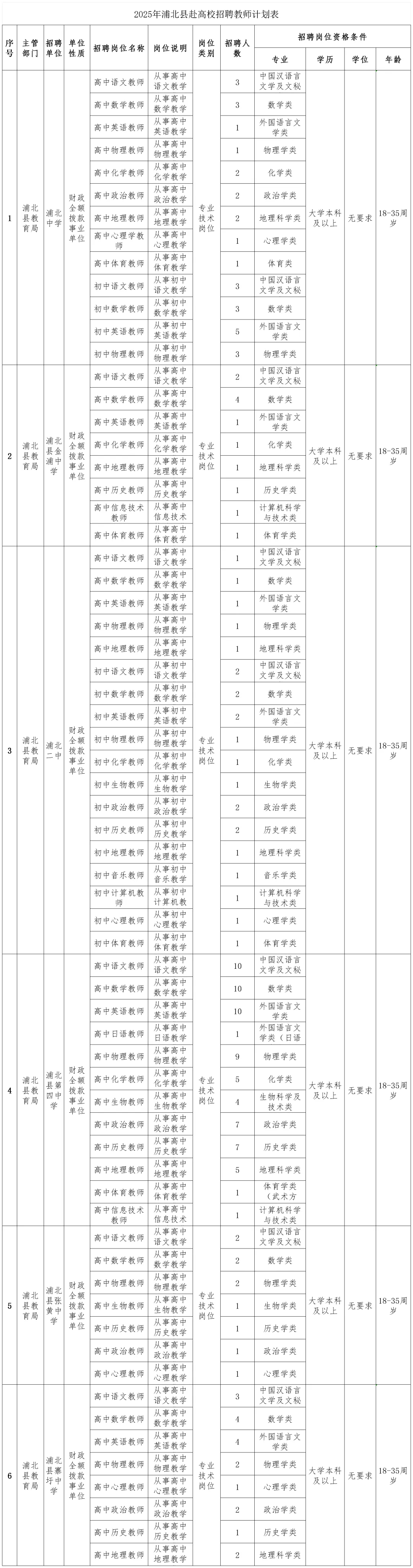 2025廣西欽州浦北縣教育局招聘164人公告