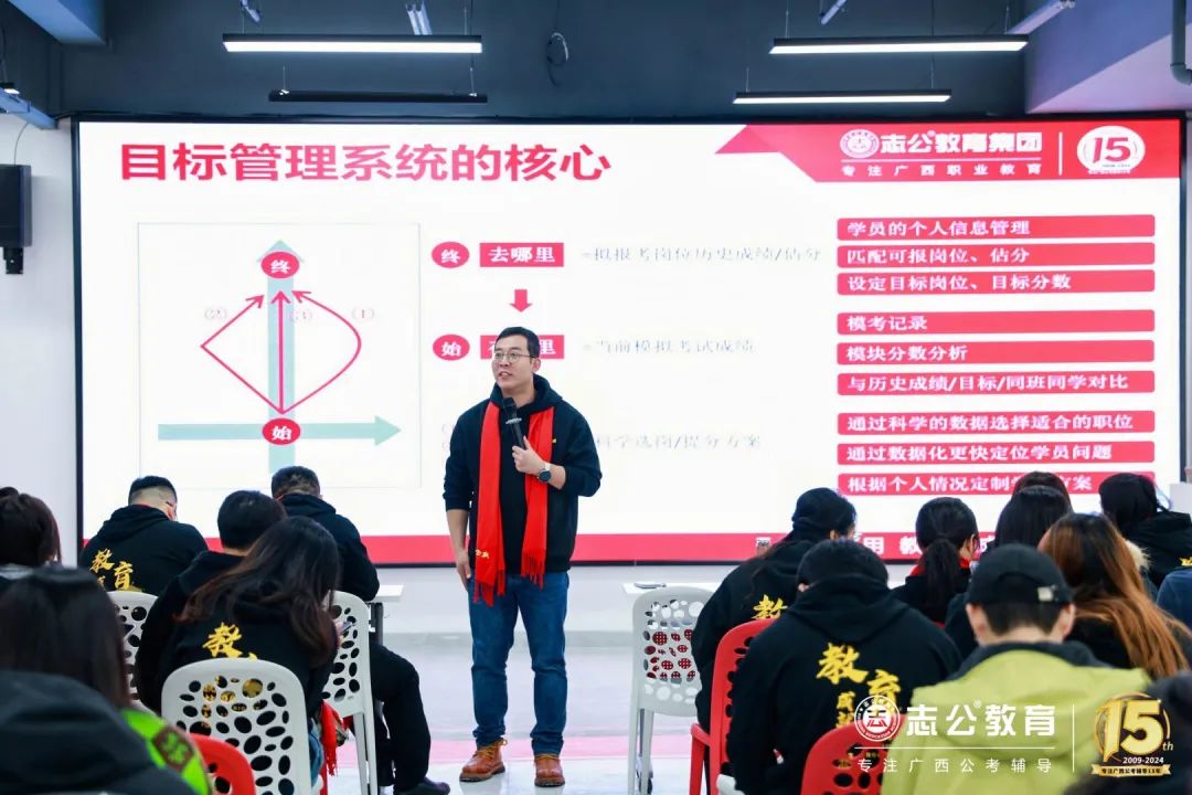 第一是極致本土化,董事長李勇表示這是志公教育集團安身立業的根本,他表示這要求對廣西公職考試響應速度要快,針對廣西的考情和學情,研發產品教學方法和課程資料,這是對教研院的考驗,明確表示未來要把錢投在學員的服務上、老師的數量、學習班主任。志公教育現在有志公教育(保稅區)全封閉基地,志公教育(中關村)全封閉基地,未來希望在桂林,柳州,百色等地也建立基地,讓志公教育在八桂大地生根,實現各美其美,美美與共。