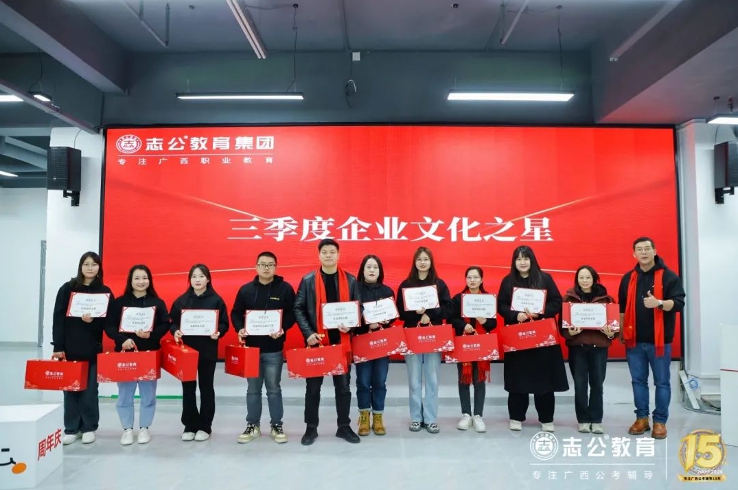 一直以來,志公教育都秉承著“12條企業文化核心價值觀”,包括客戶原則——以學員為中心”、“管理原則——人人都是經營者”等12項原則,扎根廣西本土公考,全力服務每一位志公學員。在董事長李勇的正確領導下,在廣大學員的支持下,在全體員工的共同努力下,志公教育從無到有,從小到大,不斷夯實發展基礎,贏得了客戶的信賴和品牌形象。全體志公人將堅定目標齊奮斗、凝心聚力再出發,為志公高質量發展再立新功。