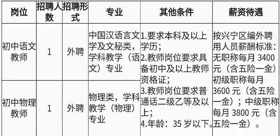 原文標題:南寧市興寧區昆侖初級中學招聘啟事