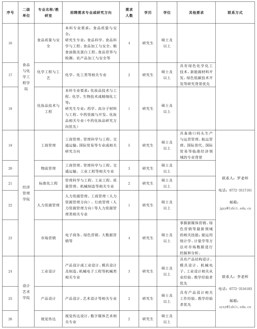 聯系地址:廣西柳州市魚峰區新柳大道99號柳州工學院人事處(科教樓1409辦公室)