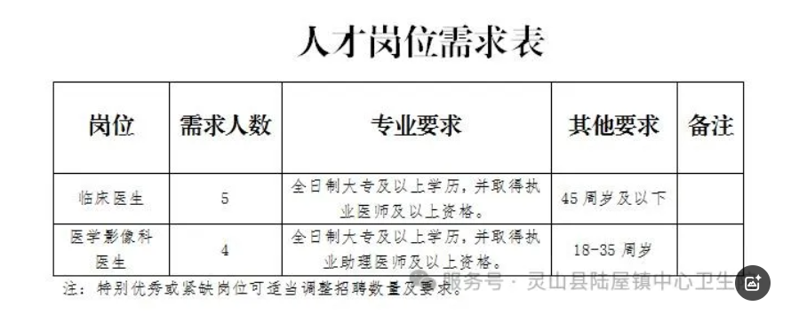 原文標題:靈山縣陸屋鎮中心衛生院(靈山縣第四人民醫院)關于招聘2025年編外人員的公告