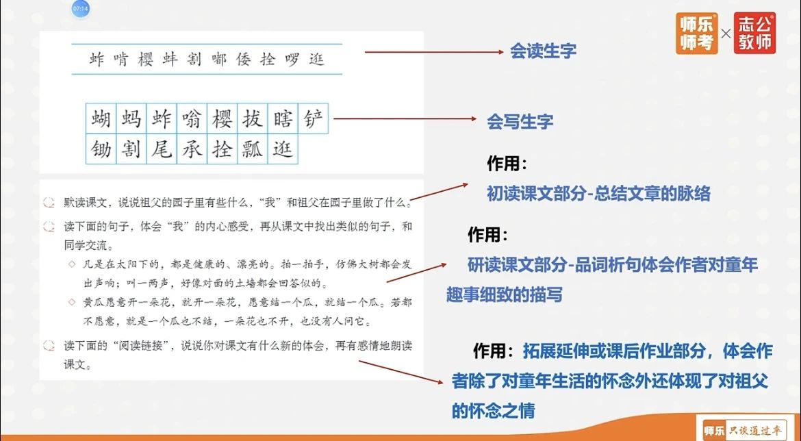 特惠價:199元 ?結合歷年考情,分模塊系統梳理考試篇目 ?分篇目分步驟詳解教學設計,提升備課速度 毫無思路怎么辦? 缺乏知識儲備怎么辦? 網課將精選核心課型 深入進行教材梳理 網課內容示例 ↓↓ 搶先體驗價:3.9元 ??語/數/英/幼/音/體/美/文綜/理綜 ??各學科高頻??计?/p>