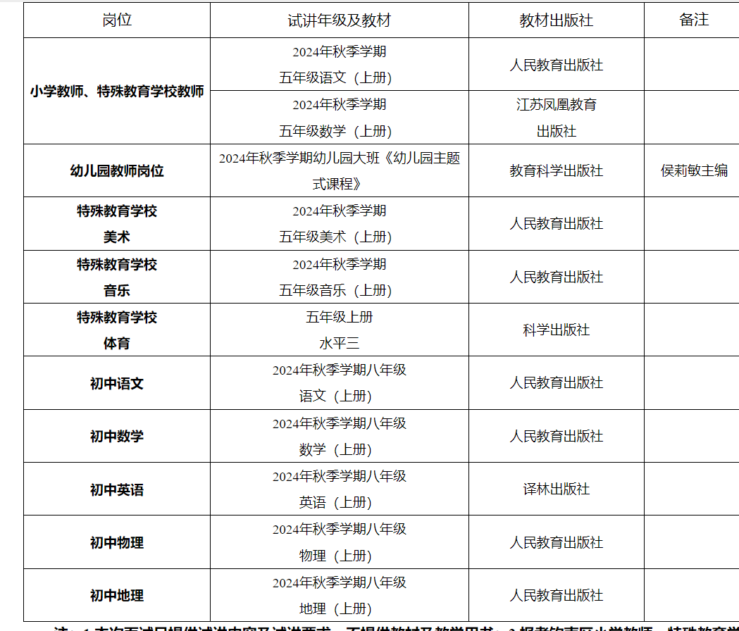 注:1.本次面試只提供試講內容及試講要求,不提供教材及教學用書;2.報考欽南區小學教師、特殊教育學校教師崗位的考生可自由選擇語文或數學進行試講。