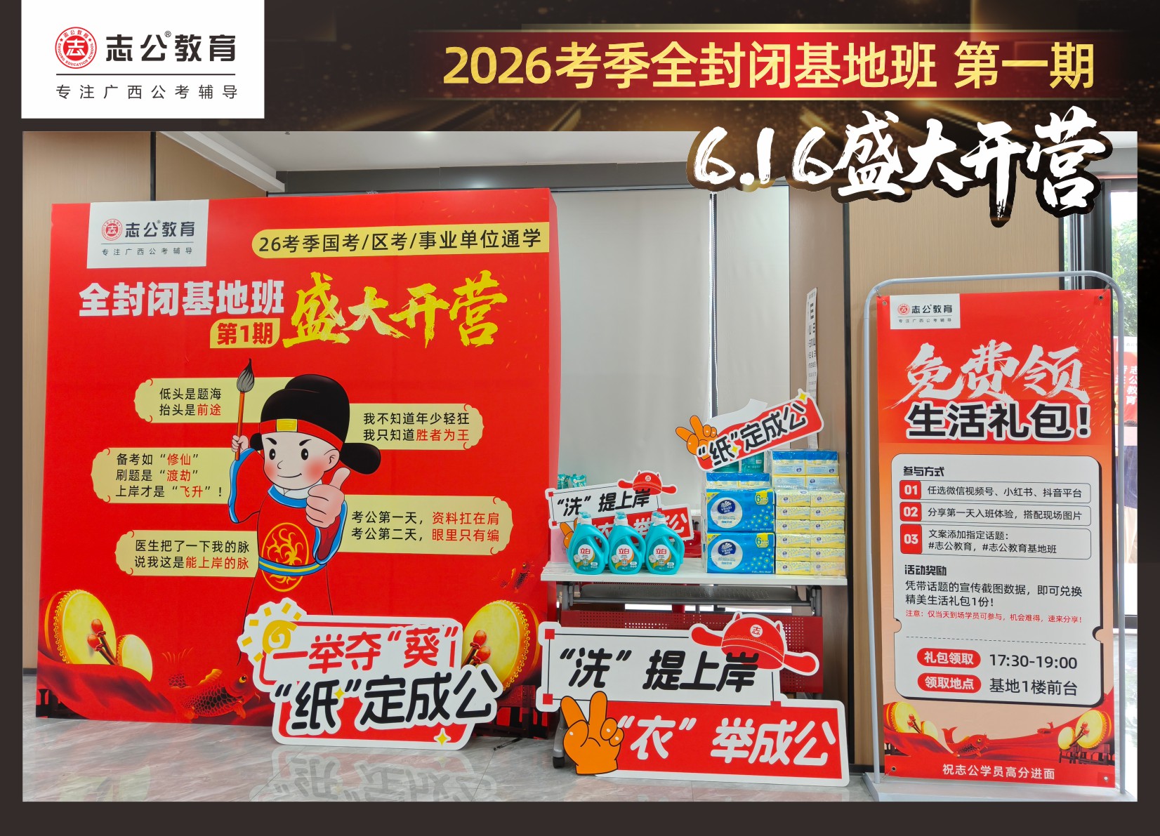 今天的開班還有一系列小活動噢~瞧!——“學員打卡活動”,所有今天到場的基地班學員,通過做一些小任務的方式,可以到前臺領取生活禮包即可領取生活禮品1份(一提六包的紙巾,或者一瓶洗衣液),這也是志公教育對所有學員的美好祝愿,預祝大家未來能夠“紙”定成公,“洗”提上/岸,“衣舉成公”!