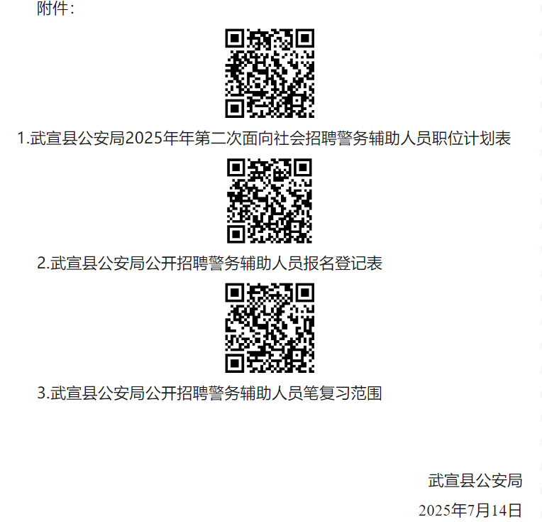 招聘人數:8人,詳見《武宣縣公安局2025年第二次面向社會招聘輔警職位計劃表》(附件1)。