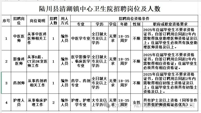 報名地點:陸川縣清湖鎮中心衛生院五樓辦公室。